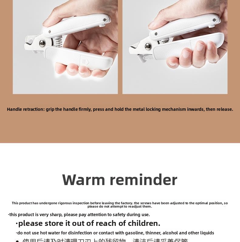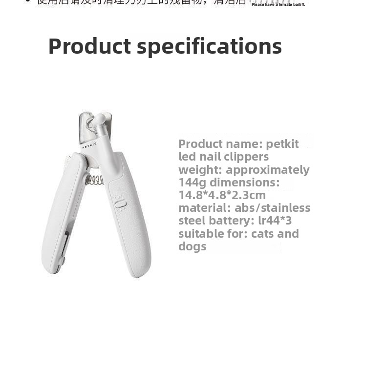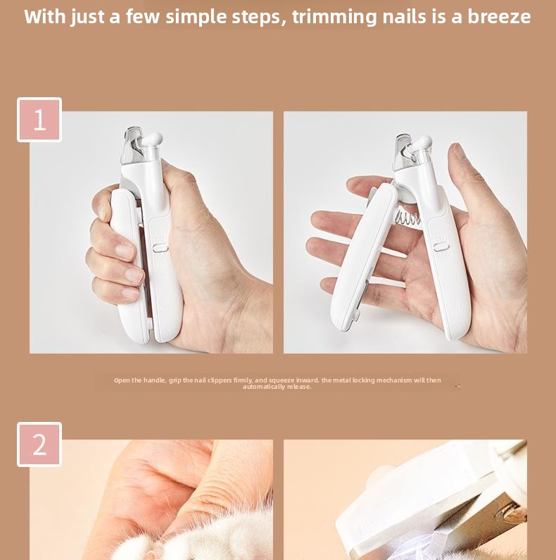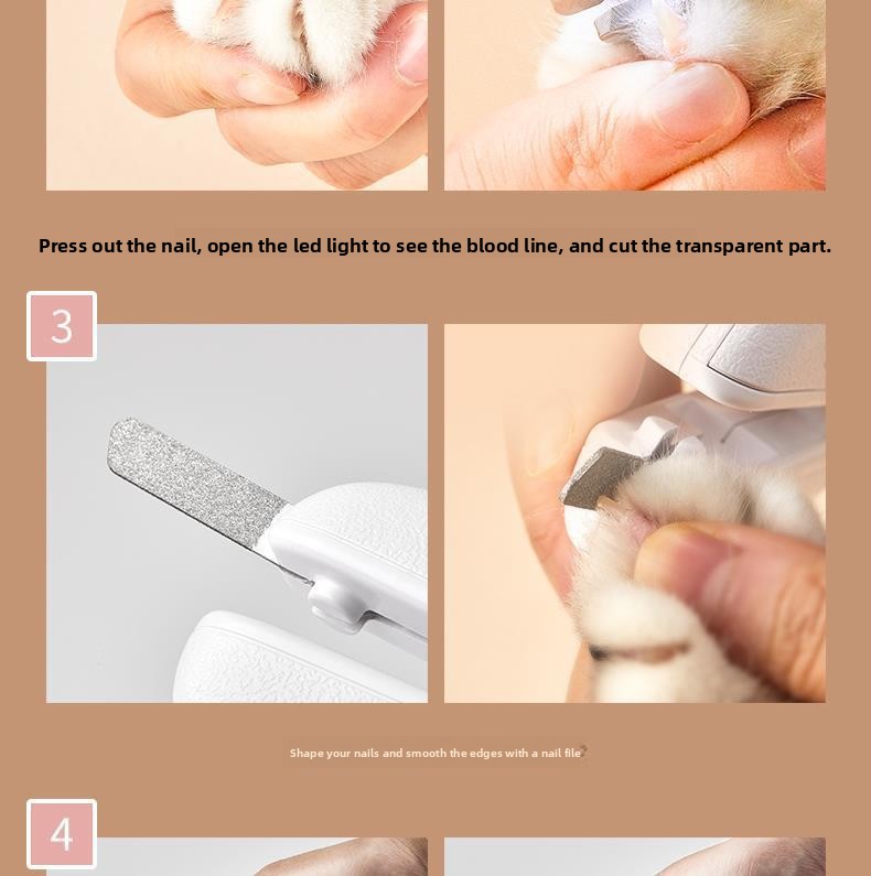 Overview LED Illumination - Built-in LED light provides clear visibility for precise nail trimming Safety Guard - Protective design prevents over-cutting and protects pet's quick 2-in-1 Function - Combines clipping and grinding for complete nail care Ergonomic Grip - Comfortable non-slip handle for steady control Multi-Pet Use - Suitable for cats, dogs, and small animals